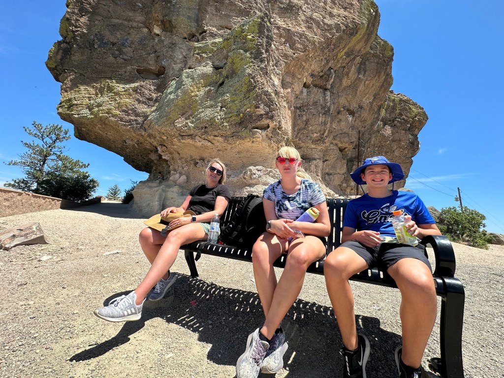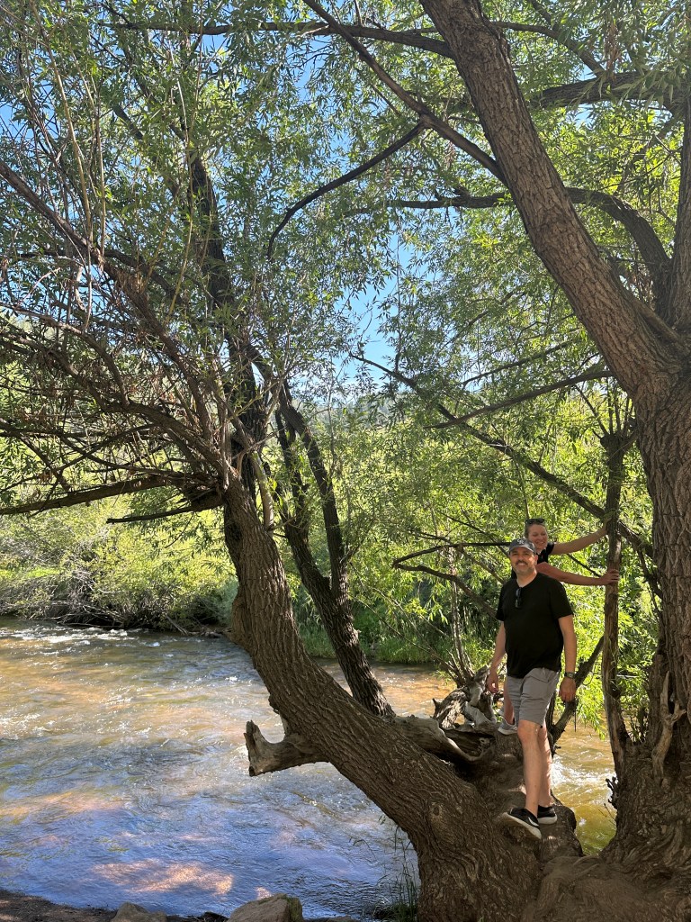 After this we went to the Aurora Reservoir so that we could swim and cool off. Apparently half of the USA had the same idea as us – fly to Denver, go to the Aurora Reservoir – because the line of cars was a mile long and not moving at the entrance. So we turned around and tried Lair O’ the Bear again, which was easy to get to this time. It was an easy 1-mile flat hike, and very pretty. We all took our shoes off and stood in the cold creek water. It was great and created a core memory for me lol.