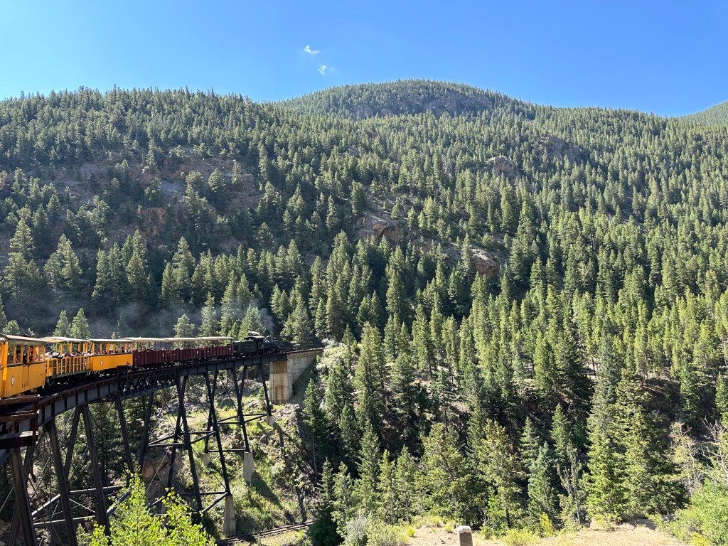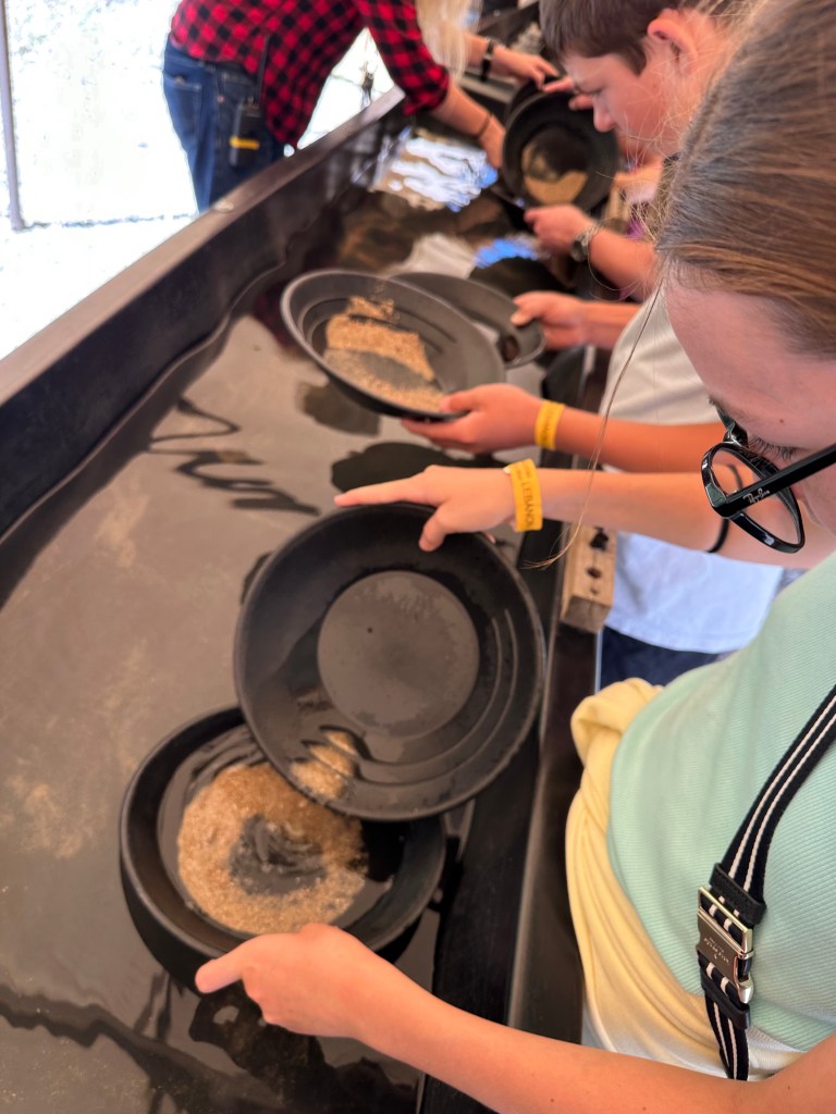 Tuesday we went up into the mountains again, this time to Georgetown to ride a steam locomotive that took us to a sliver mine. We learned all about how the miners worked 100 years ago. Then we put on hard hats and headed into the mines, which were a chilly 42 degrees. The ceilings were so low; I had to duck the whole time while walking. It was a great experience and the train ride went through beautiful countryside/mountain landscapes. We also got to pan for gold. Everyone’s kit had sand with a few flakes of gold in it, so that was nice.